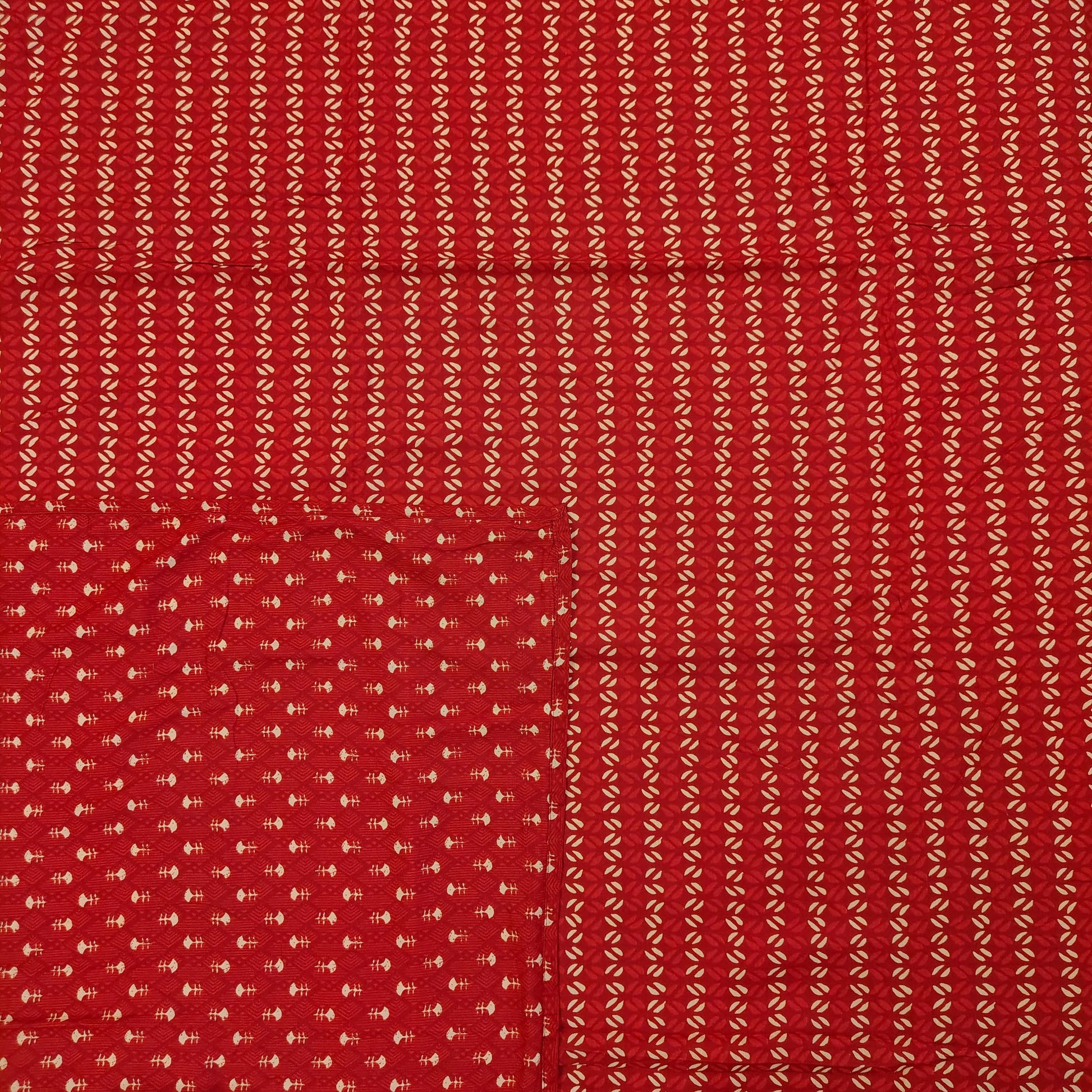 Ajrakh Dohar" embodies the rich, intricate beauty of the Ajrakh fabric, a symbol of cultural heritage and timeless tradition. Ajrakh is known for its deep, vivid patterns and the meticulous block printing process, often passed down through generations. The term "Dohar," meaning repetition or echo, perfectly complements Ajrakh's repetitive patterns, which speak to the enduring nature of culture, craft, and identity.