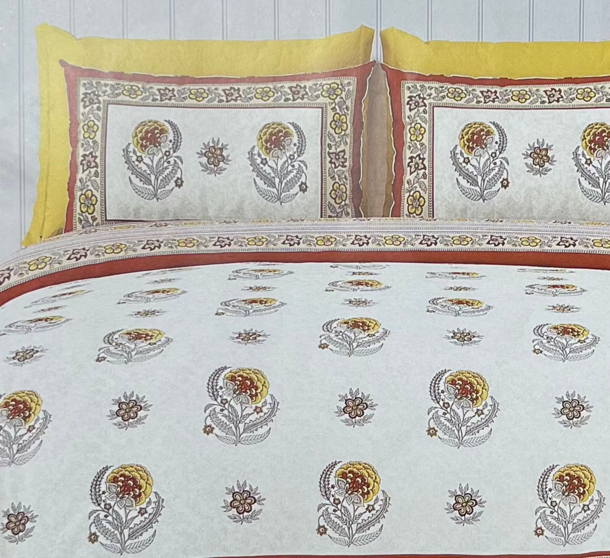 Floral printed cotton bedsheets feature vibrant and intricate flower patterns, adding a refreshing and elegant touch to your bedroom decor.