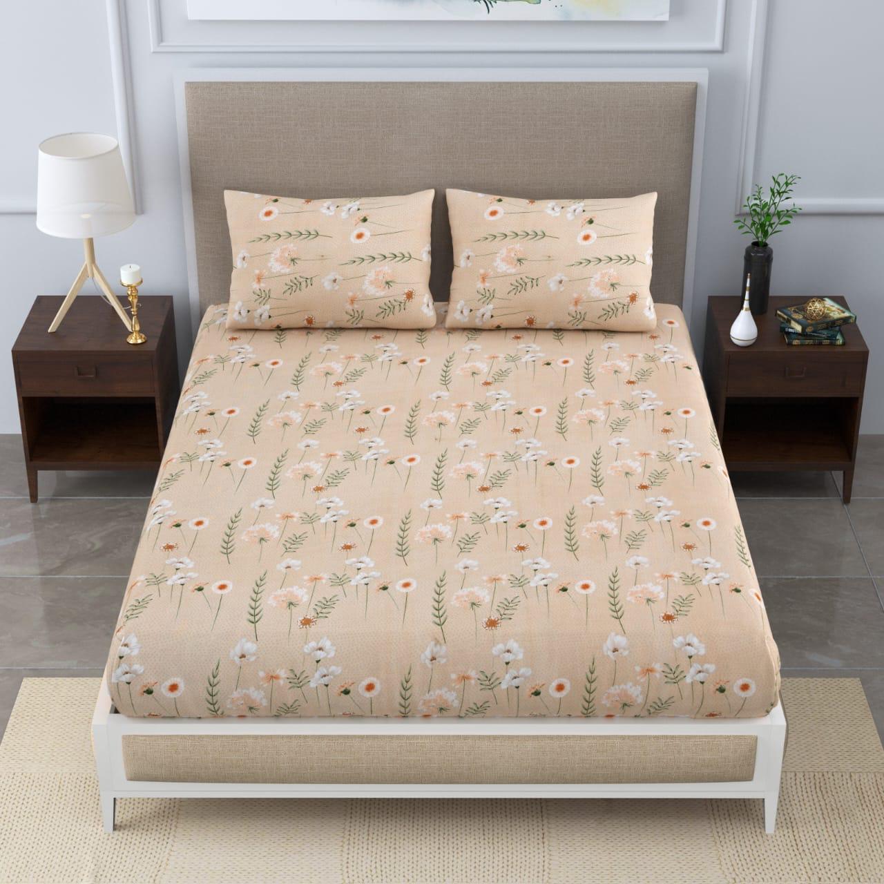 Cotton feel Glace Cotton Bedsheets with 2 Pillow Covers