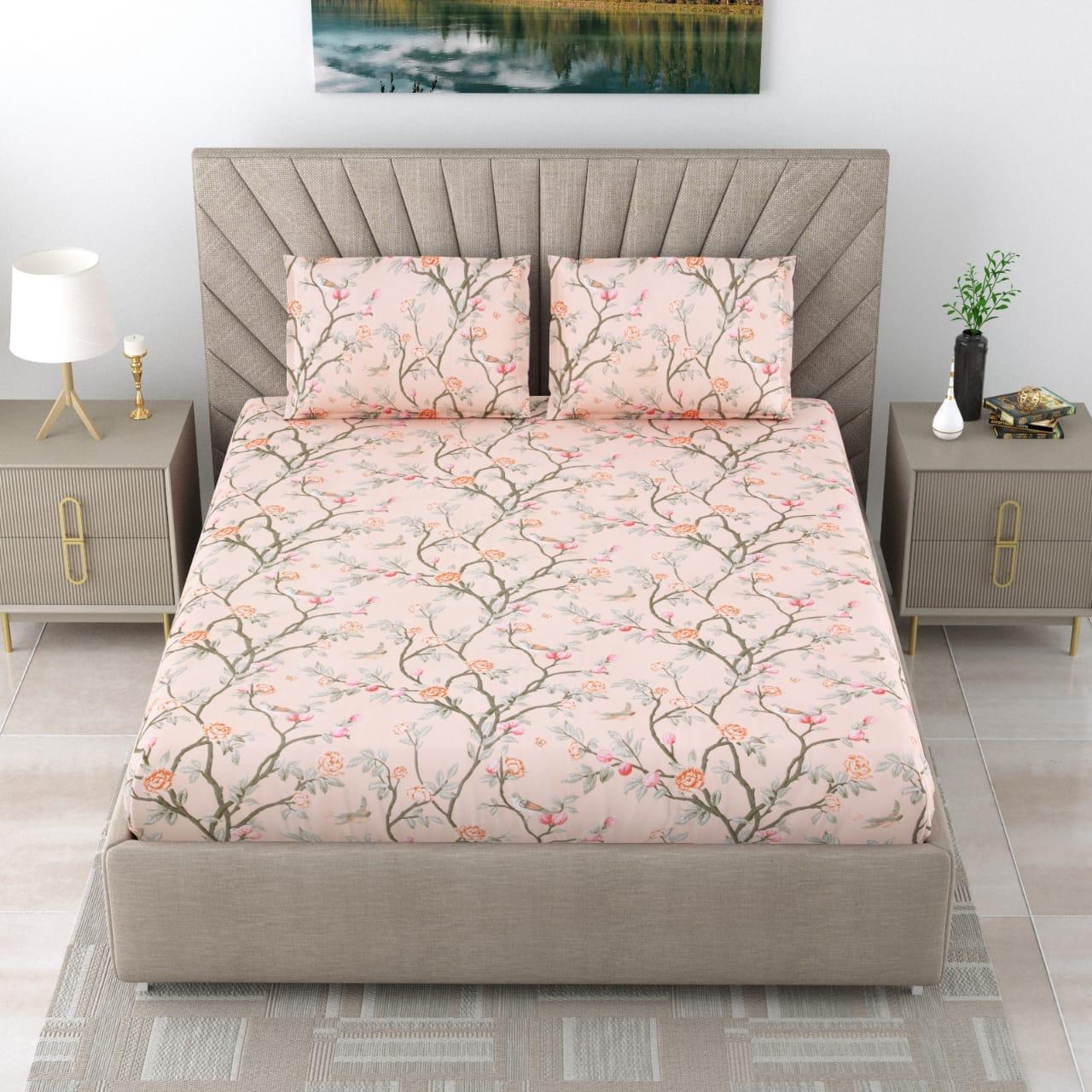 Cotton feel Glace Cotton Bedsheets with 2 Pillow Covers
