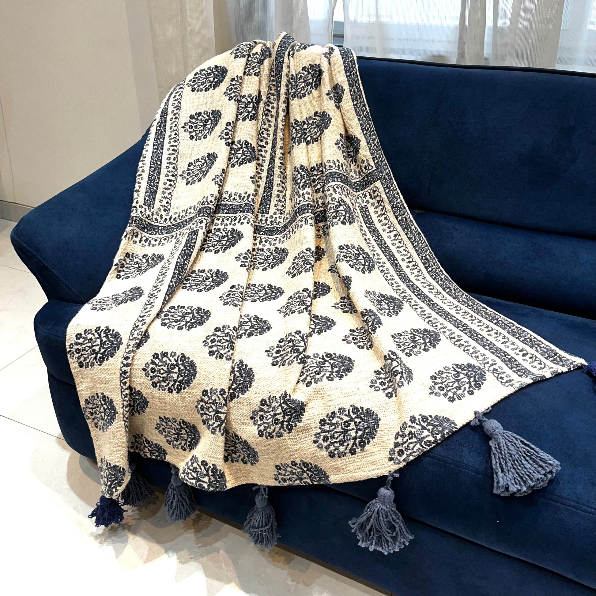 Effortless Blue Jute Sofa Throw