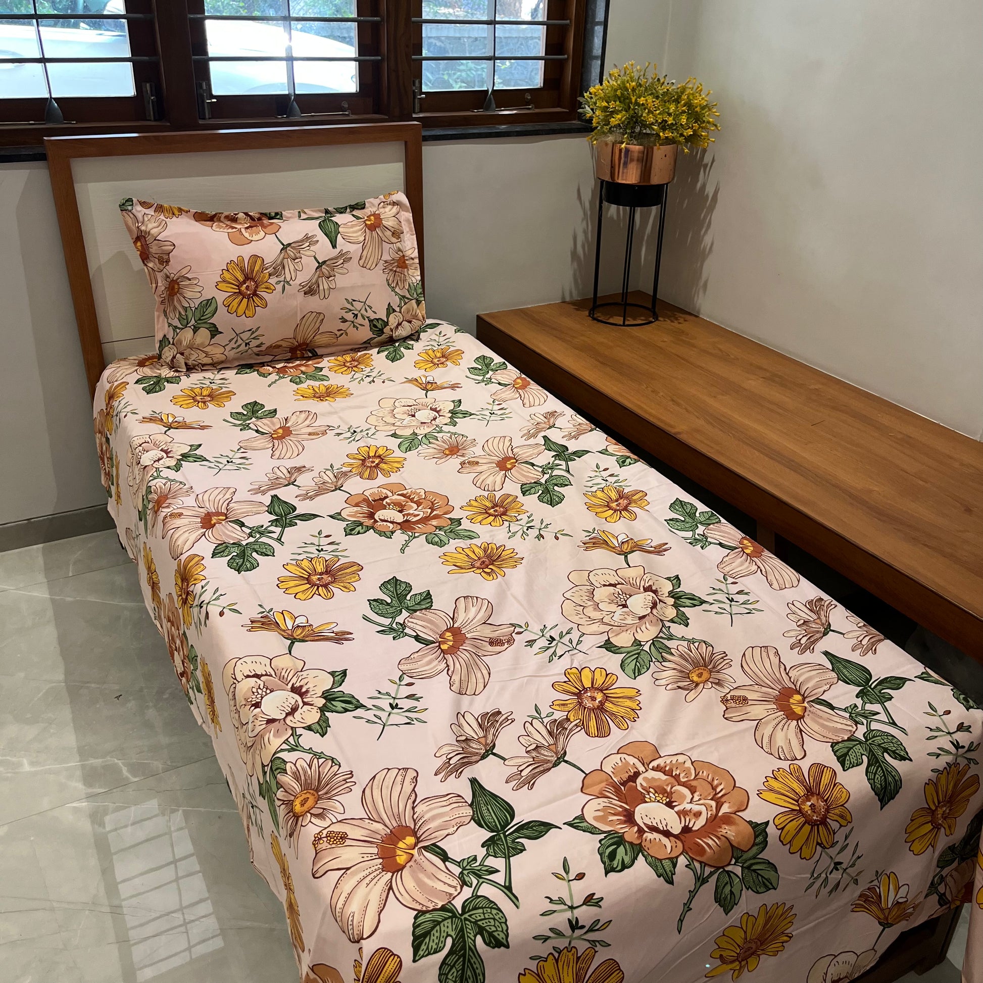 Cotton feel Glace Cotton Bedsheet with 1 Pillow Cover