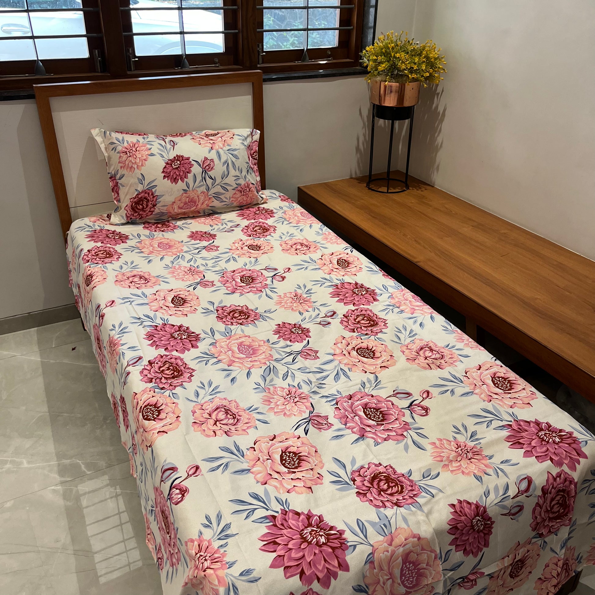 Cotton feel Glace Cotton Bedsheet with 1 Pillow Cover