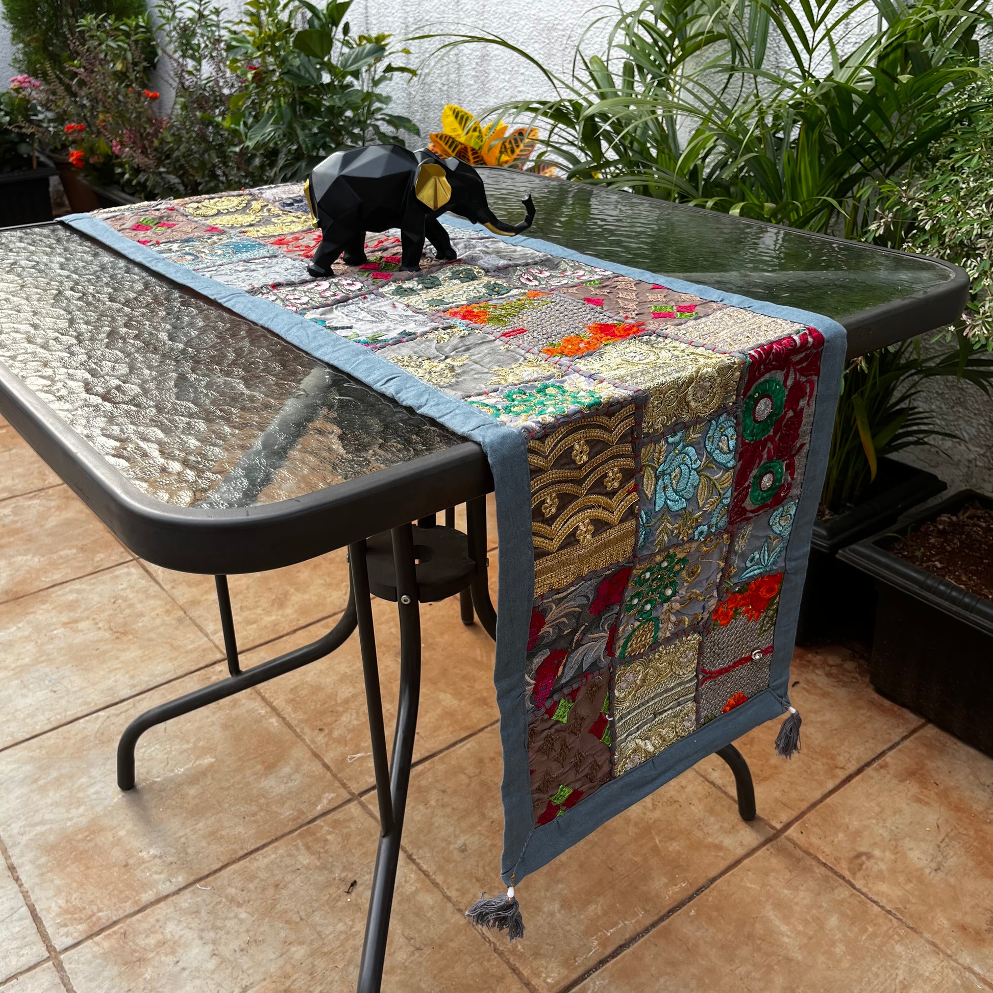 This patchwork table runner is the perfect way to bring warmth, texture, and personality to any dining space. Crafted from a blend of vibrant fabrics and stitched together in a beautiful, eclectic pattern, it adds an inviting, handmade touch to your table. Whether you’re hosting a cozy family dinner or celebrating a special occasion, this runner effortlessly enhances any setting with its charming, bohemian flair.