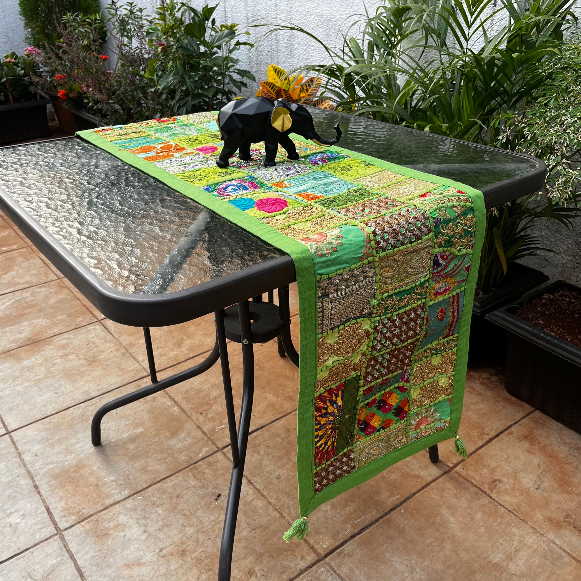This patchwork table runner is the perfect way to bring warmth, texture, and personality to any dining space. Crafted from a blend of vibrant fabrics and stitched together in a beautiful, eclectic pattern, it adds an inviting, handmade touch to your table. Whether you’re hosting a cozy family dinner or celebrating a special occasion, this runner effortlessly enhances any setting with its charming, bohemian flair.