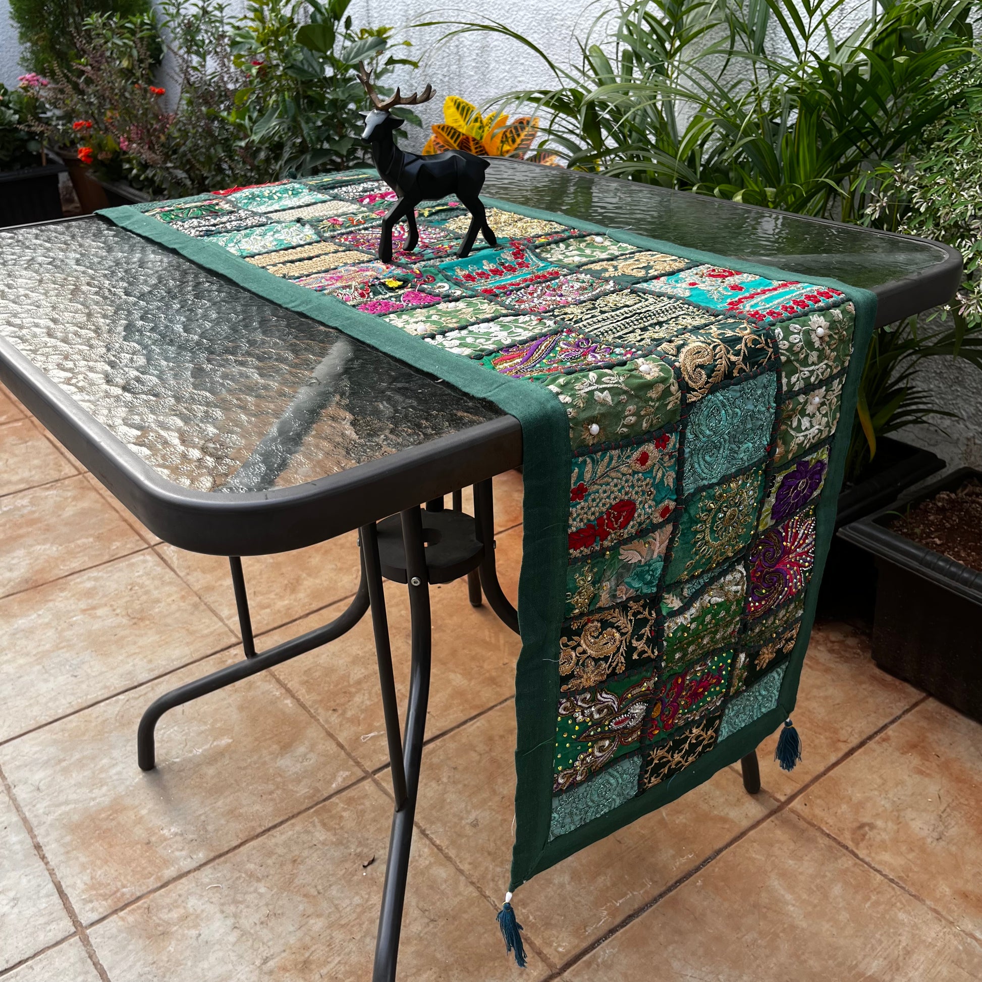 This patchwork table runner is the perfect way to bring warmth, texture, and personality to any dining space. Crafted from a blend of vibrant fabrics and stitched together in a beautiful, eclectic pattern, it adds an inviting, handmade touch to your table. Whether you’re hosting a cozy family dinner or celebrating a special occasion, this runner effortlessly enhances any setting with its charming, bohemian flair.