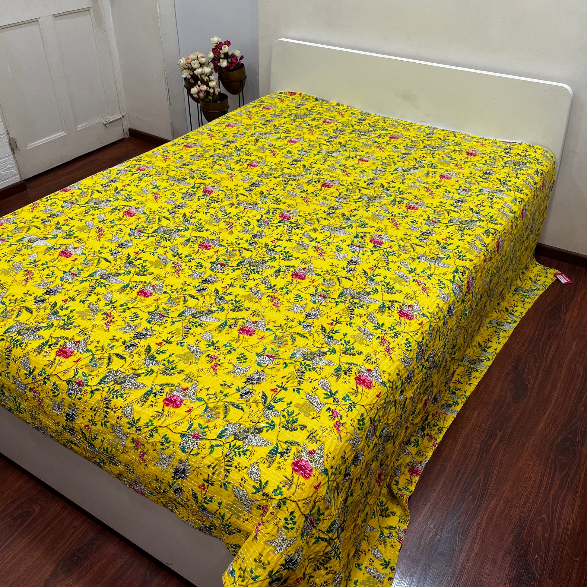 Wrap yourself in the warmth and artistry of our Kantha Bedcover, a beautiful blend of craftsmanship and comfort. Traditionally hand-stitched by skilled artisans, each bedcover is a unique piece of art, woven with love and care. The intricate Kantha stitching, known for its delicate yet durable pattern, tells the story of centuries-old tradition passed down through generations.