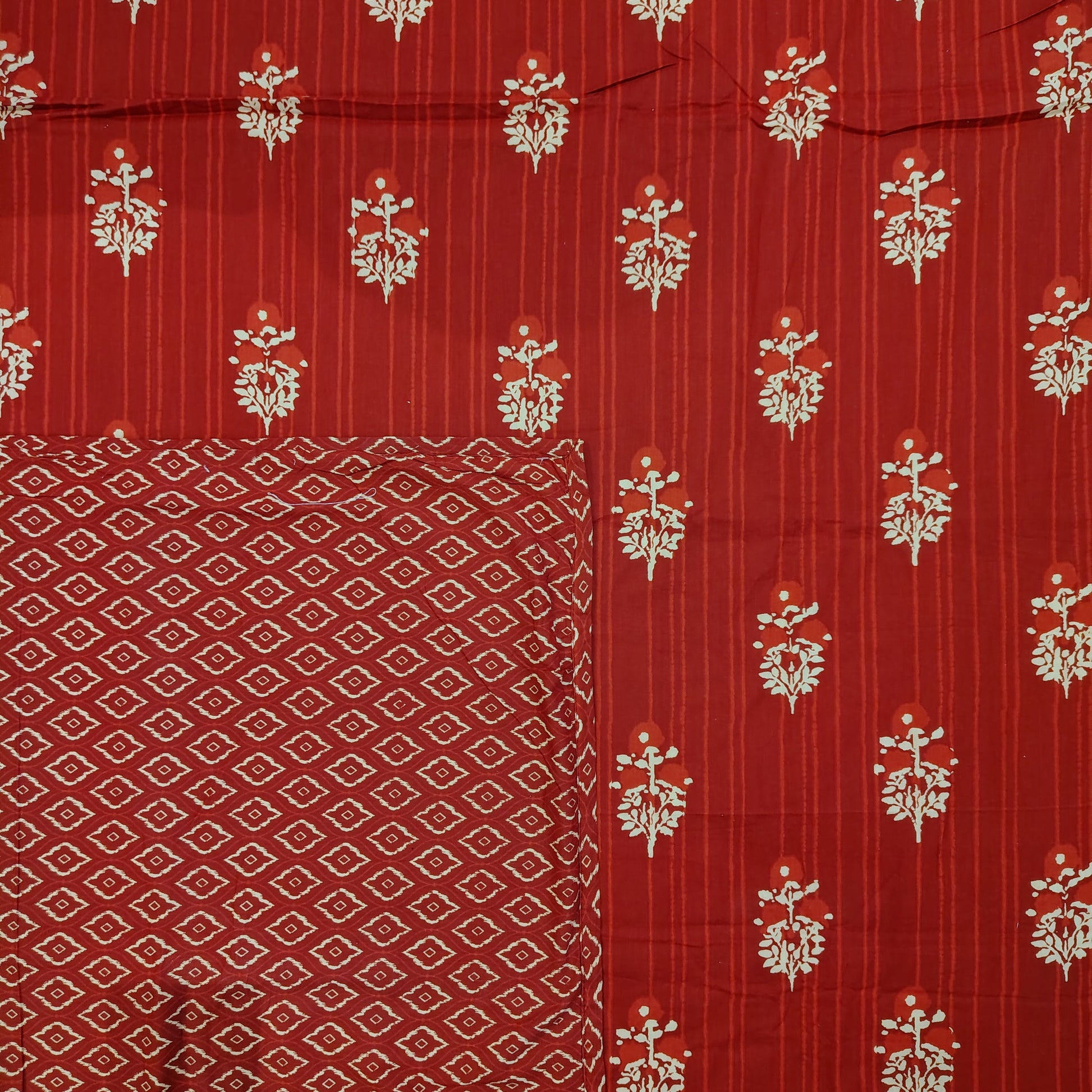 Ajrakh Dohar" embodies the rich, intricate beauty of the Ajrakh fabric, a symbol of cultural heritage and timeless tradition. Ajrakh is known for its deep, vivid patterns and the meticulous block printing process, often passed down through generations. The term "Dohar," meaning repetition or echo, perfectly complements Ajrakh's repetitive patterns, which speak to the enduring nature of culture, craft, and identity.