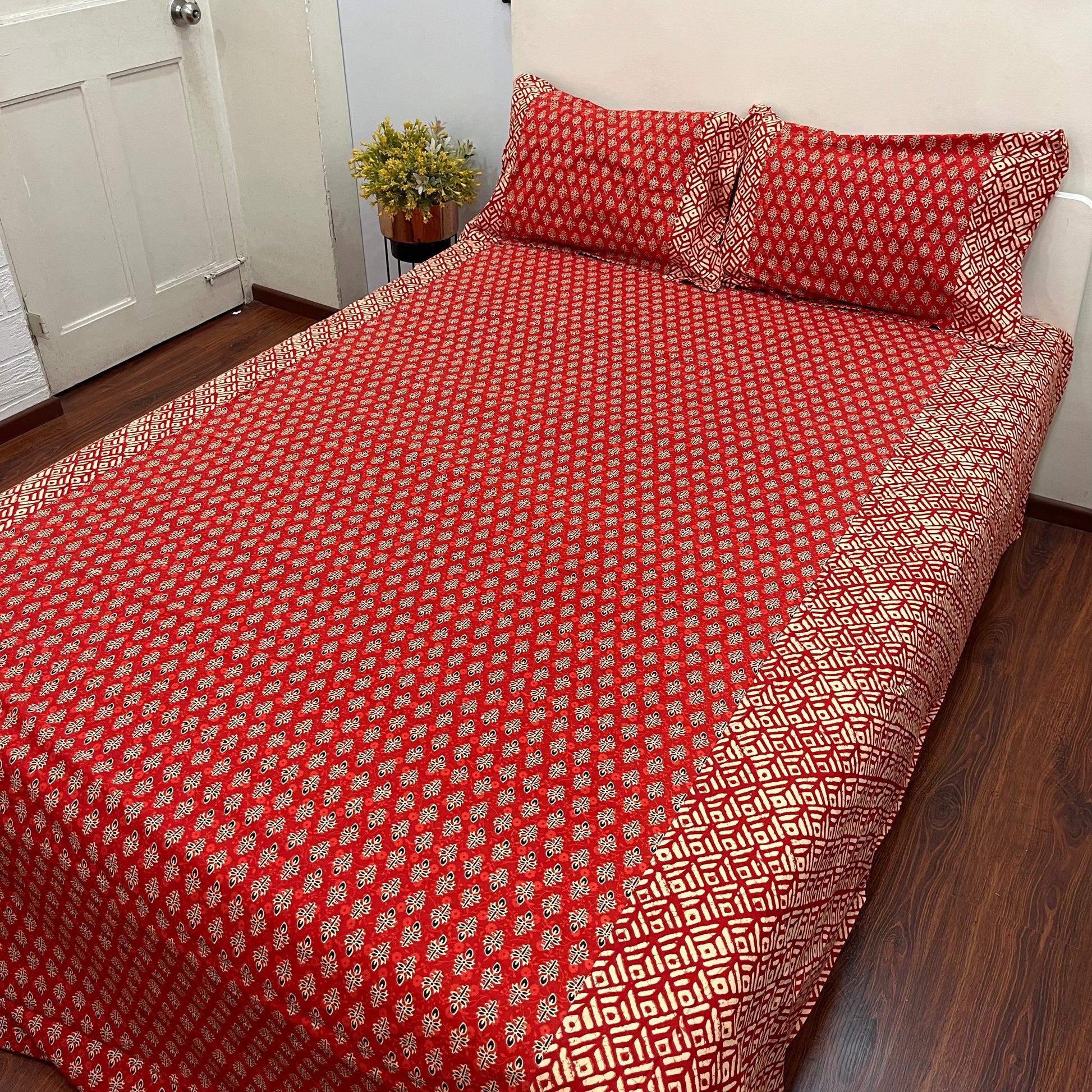 Timeless Crimson Red Ajrak Bedsheet