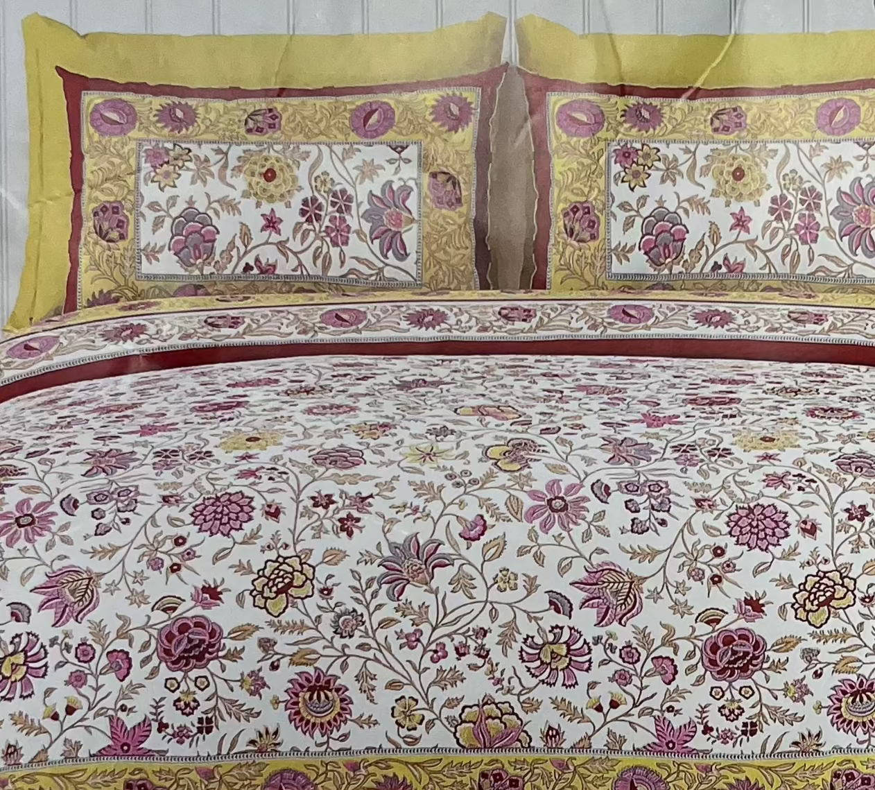 Floral printed cotton bedsheets feature vibrant and intricate flower patterns, adding a refreshing and elegant touch to your bedroom decor.
